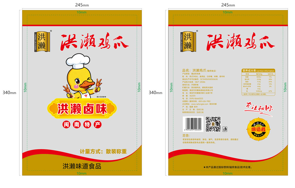 我司決定,自2025年10月12日起,我司產品單個雞爪獨立包裝(散裝稱重)的食品標簽將提前執行新版食品安全國家標準GB7718-2025《食品安全國家標準預包裝食品標簽通則》,以及其他相關標準如GB28050-2025《食品安全國家標準預包裝食品營養標簽通則》和國家市場監督管理總局令第100號《食品標識監督管理辦法》。